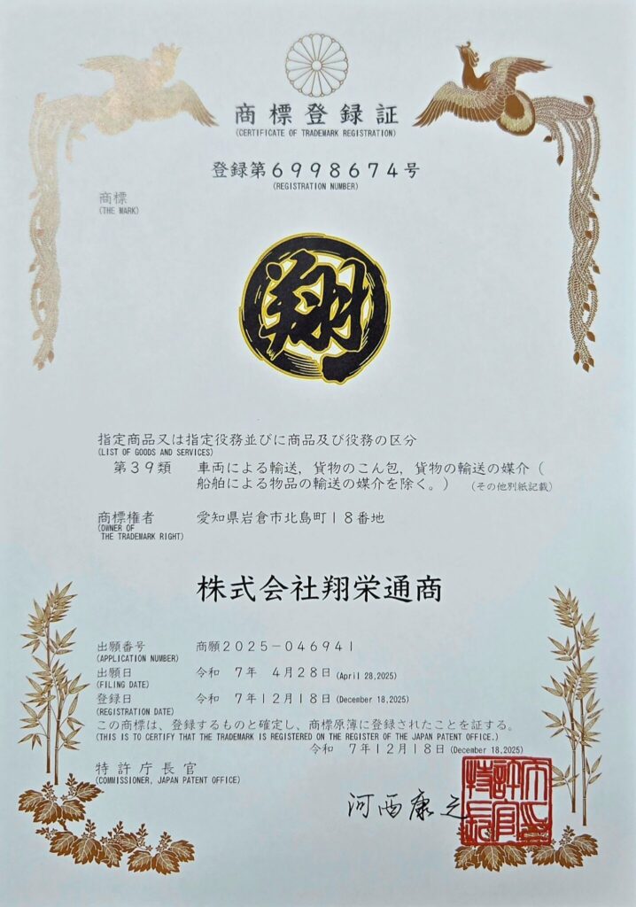弊社ロゴ商標登録証